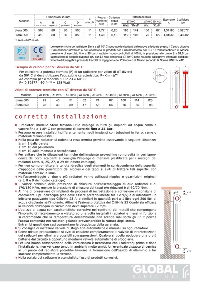 ≈ I radiatori modello Sfera trovano utile impiego in tutti gli impianti ad acqua calda e