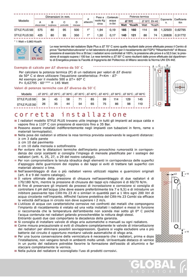 ≈ I radiatori modello STYLE PLUS trovano utile impiego in tutti gli impianti ad acqua calda e
