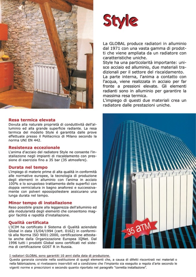 I radiatori GLOBAL sono garantiti 10 anni dalla data di produzione.