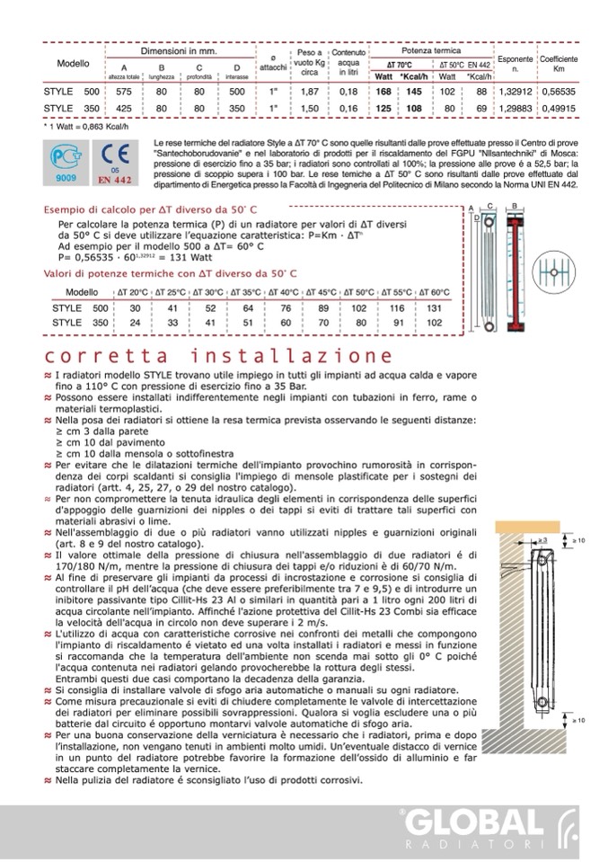 ≈ I radiatori modello STYLE trovano utile impiego in tutti gli impianti ad acqua calda e vapore