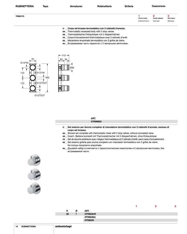 _ Corps d’encastrement thermostatique avec 2 robinets d’arrêt.