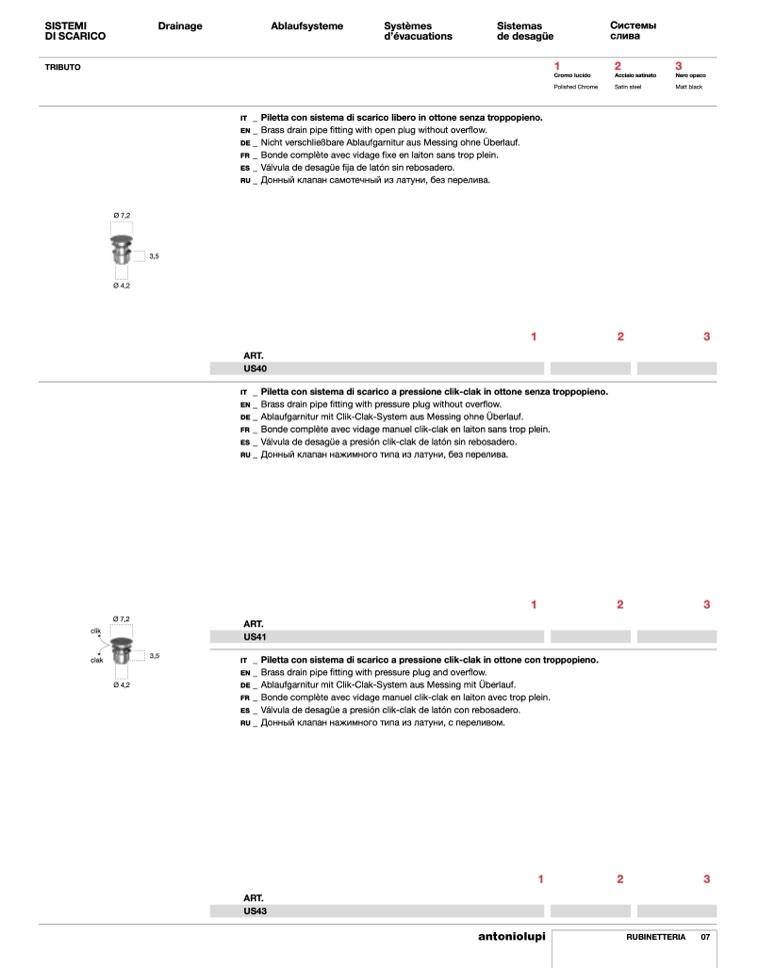 _ Piletta con sistema di scarico a pressione clik-clak in ottone con troppopieno.