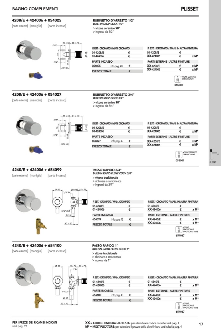 : per calcolare il prezzo delle altre finiture vedi tabella pag. 4