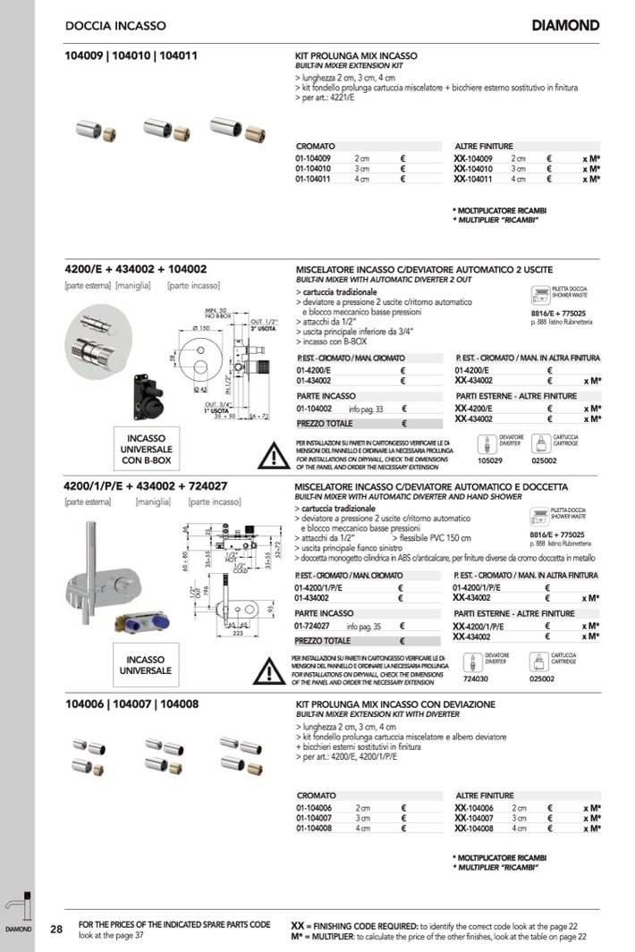 > kit fondello prolunga cartuccia miscelatore e albero deviatore