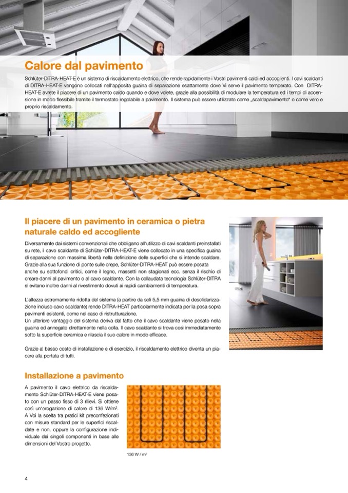 zione incluso cavo scaldante) rende DITRA-HEAT particolarmente indicata per la posa sopra