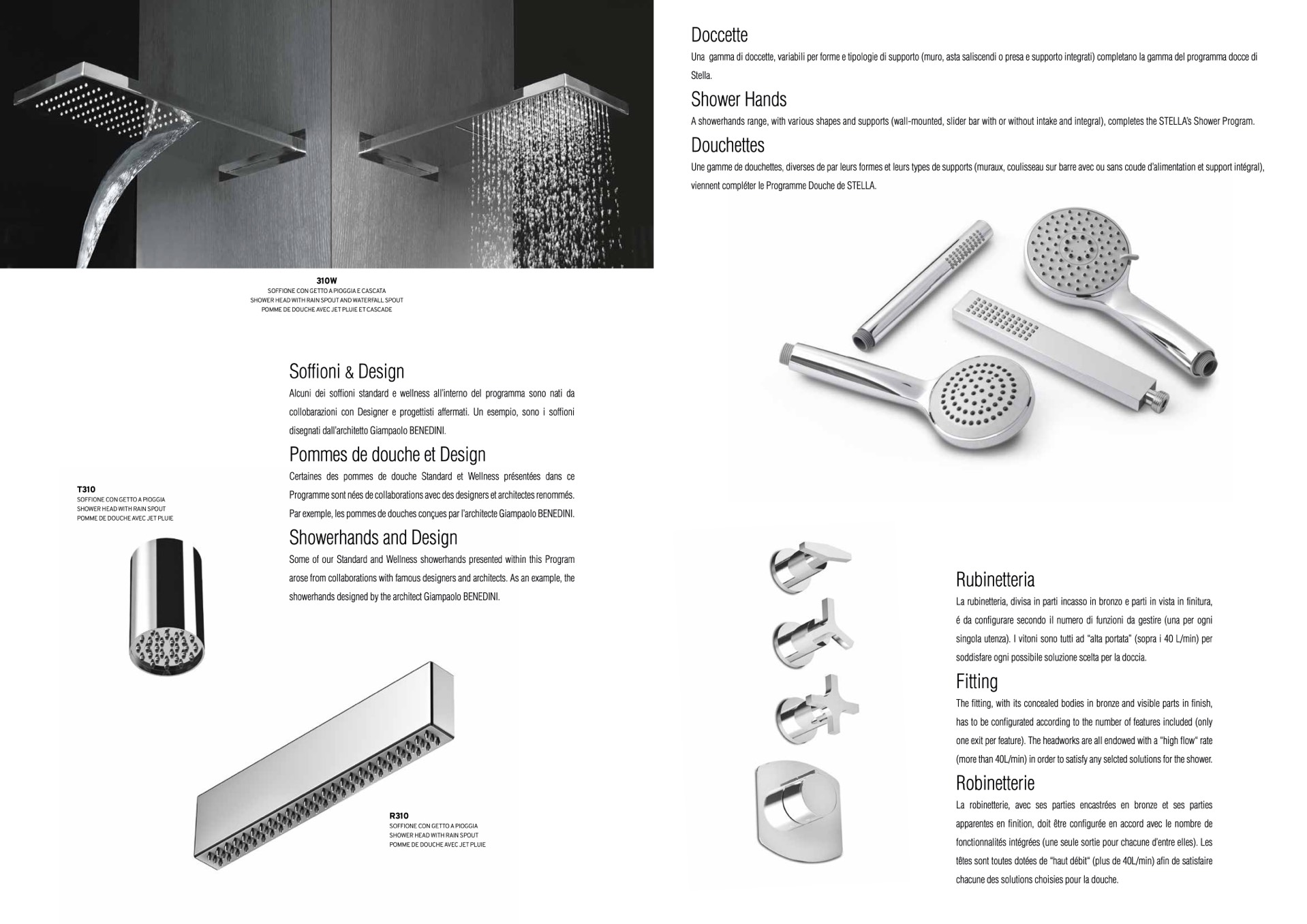 Alcuni dei soffioni standard e wellness all’interno del programma sono nati da