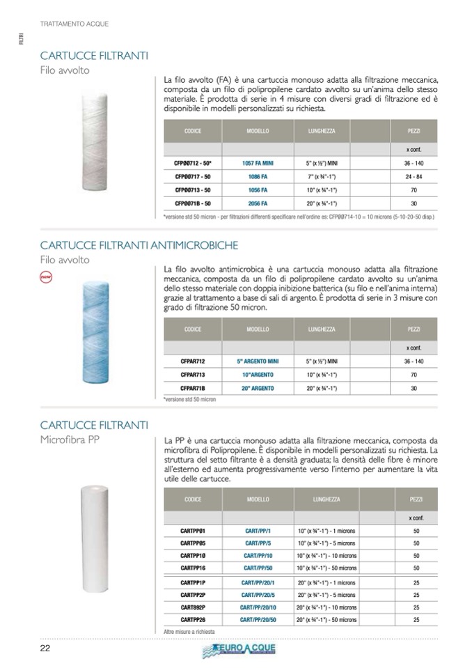 La filo avvolto (FA) è una cartuccia monouso adatta alla filtrazione meccanica,