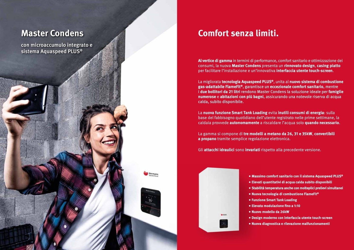 La gamma si compone di tre modelli a metano da 26, 31 e 35kW, convertibili