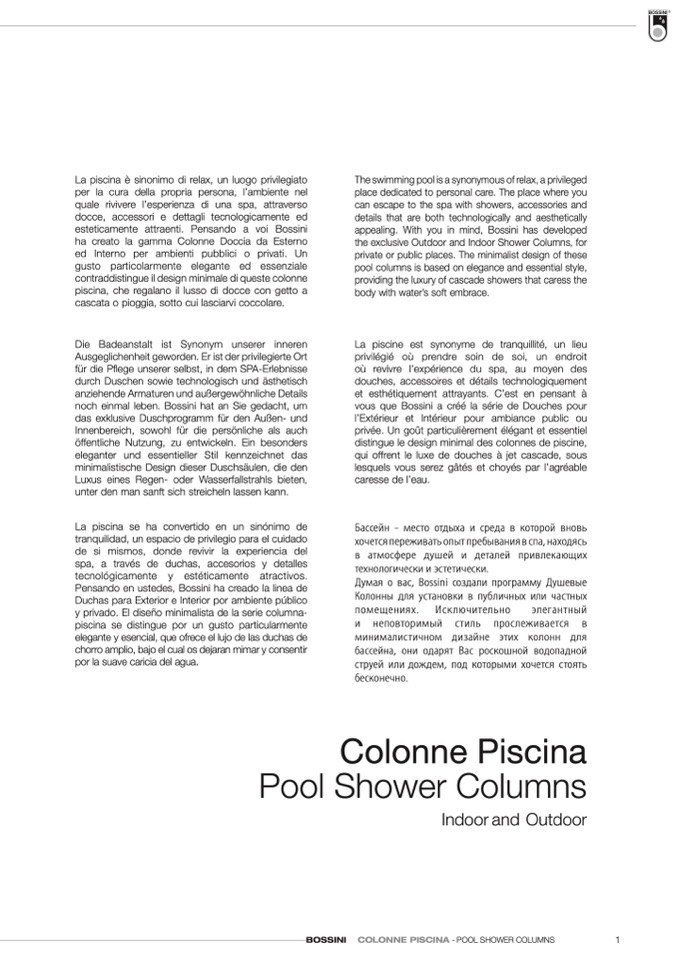 BOSSINI COLONNE PISCINA - POOL SHOWER COLUMNS