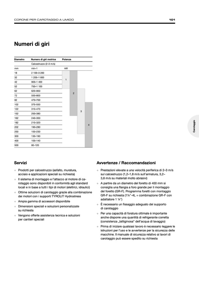 + A partire da un diametro del foretto di 400 mm si