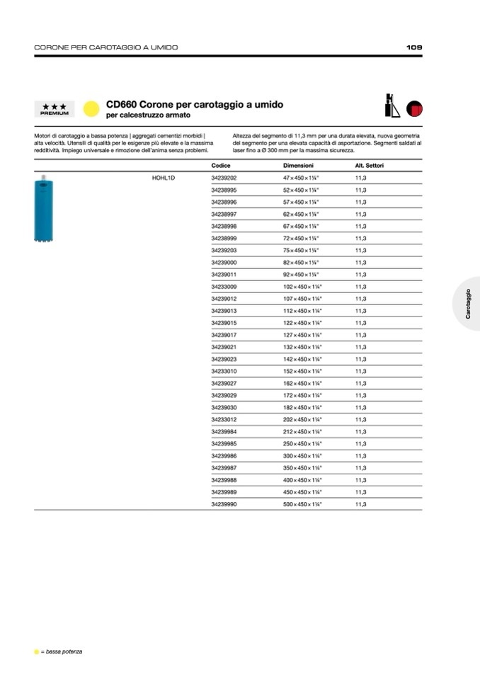 Motori di carotaggio a bassa potenza | aggregati cementizi morbidi |