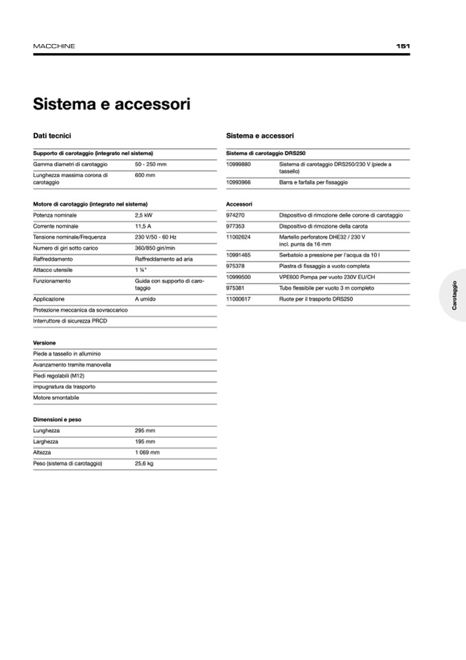Sistema di carotaggio DRS250/230 V (piede a