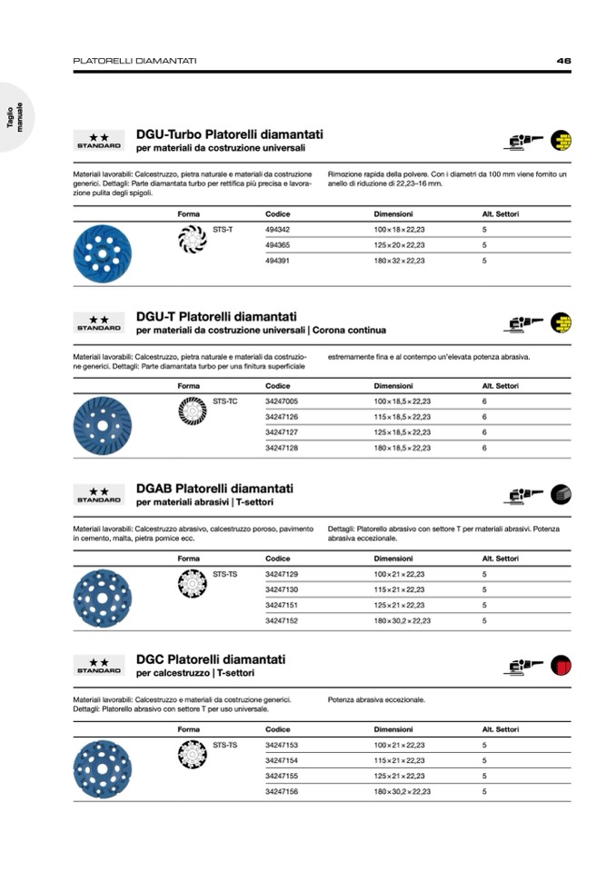 Dettagli: Platorello abrasivo con settore T per materiali abrasivi. Potenza