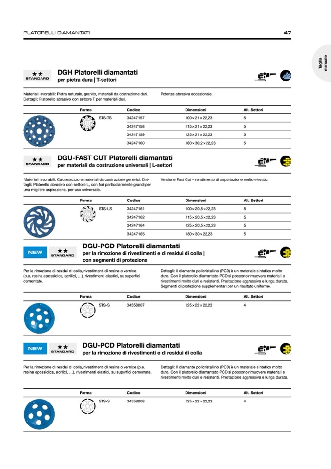 tagli: Platorello abrasivo con settore L, con fori particolarmente grandi per