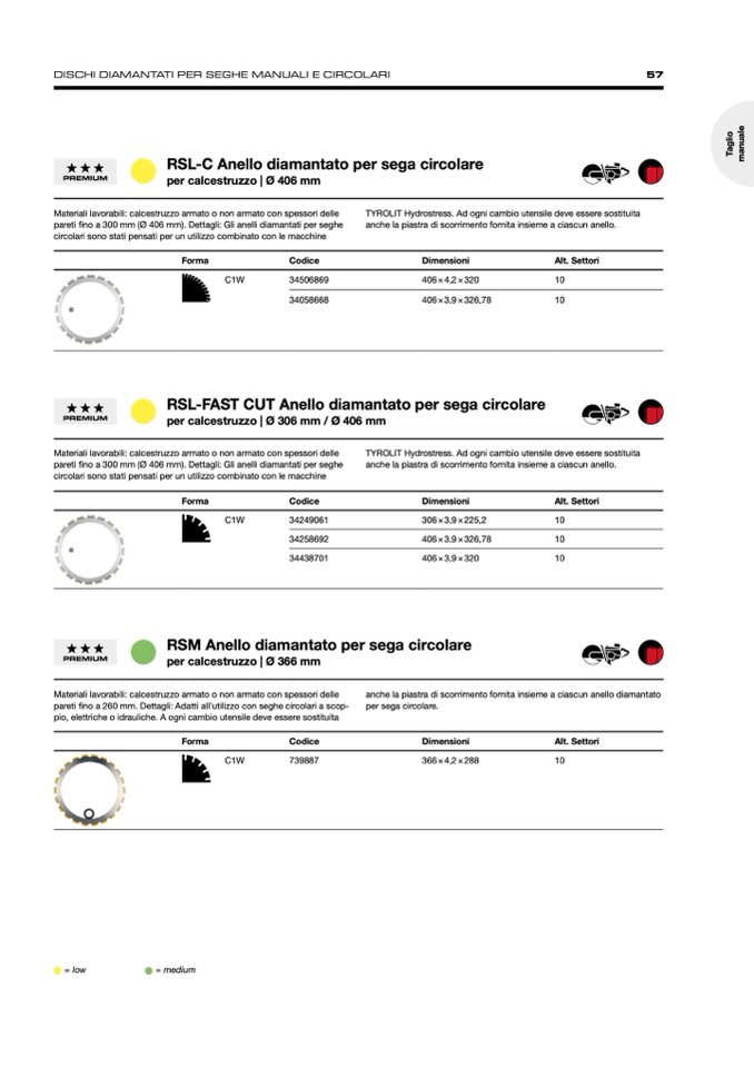 pareti fino a 300 mm (Ø 406 mm). Dettagli: Gli anelli diamantati per seghe