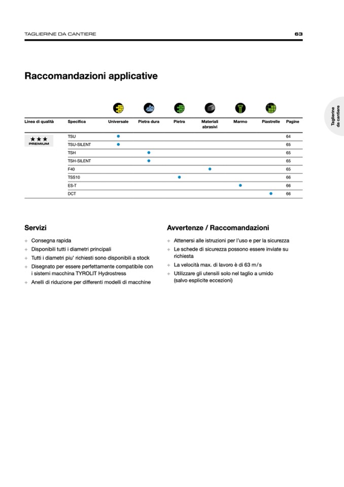 + La velocità max. di lavoro è di 63 m/s