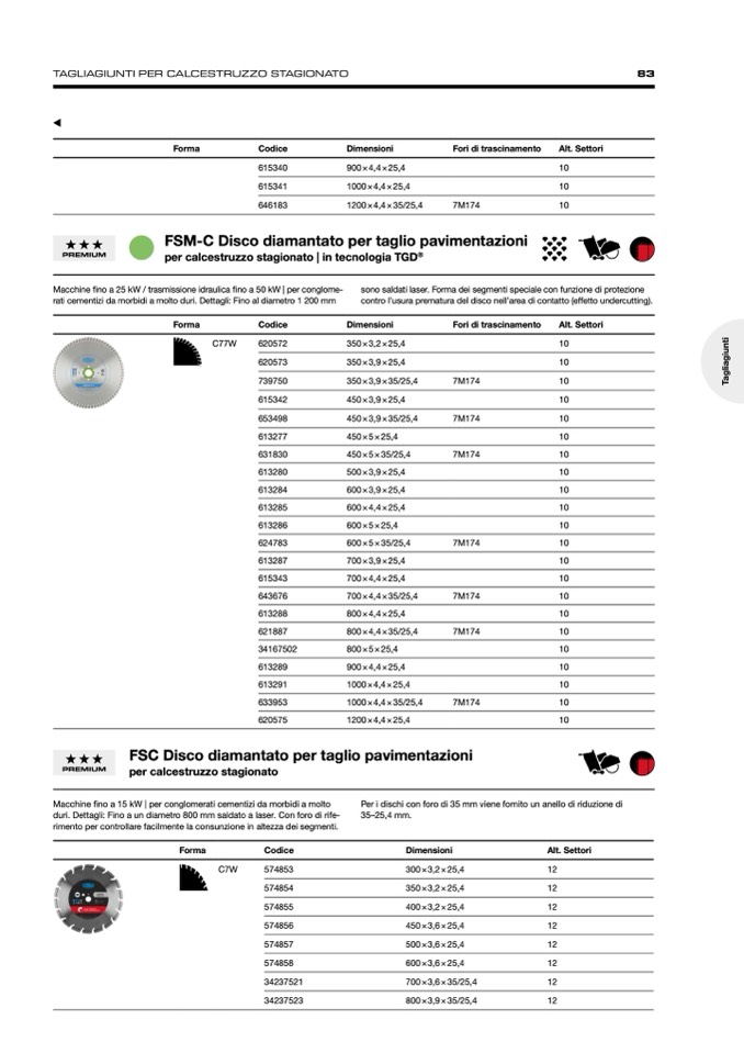 TAGLIAGIUNTI PER CALCESTRUZZO STAGIONATO