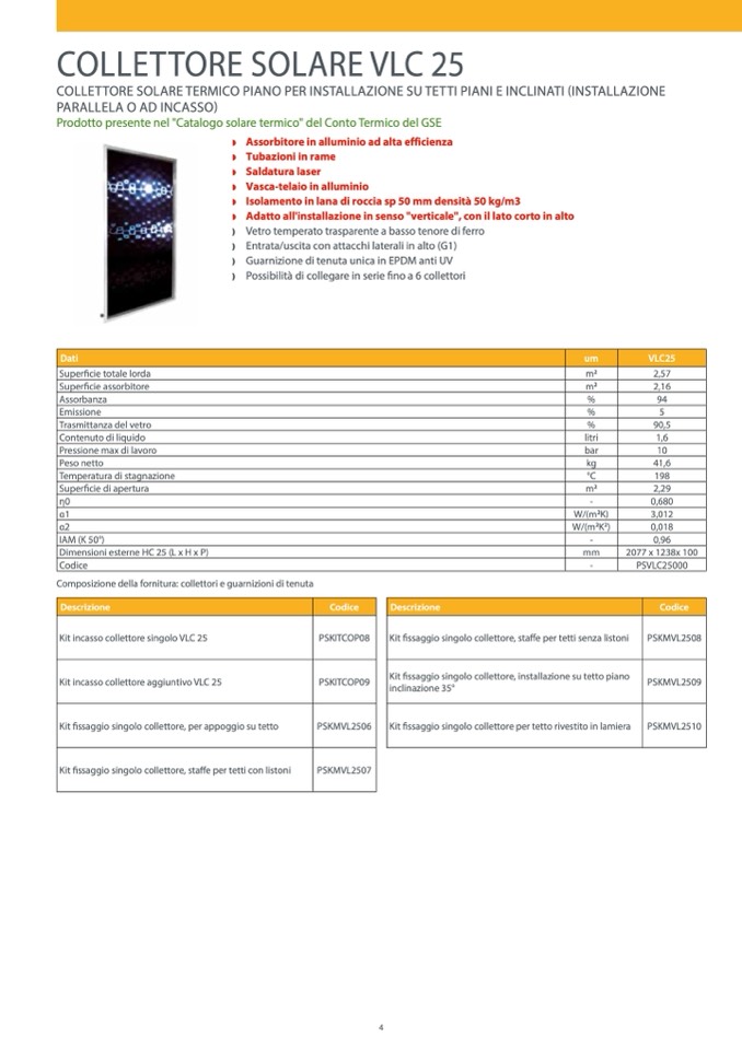 Kit fissaggio singolo collettore, installazione su tetto piano