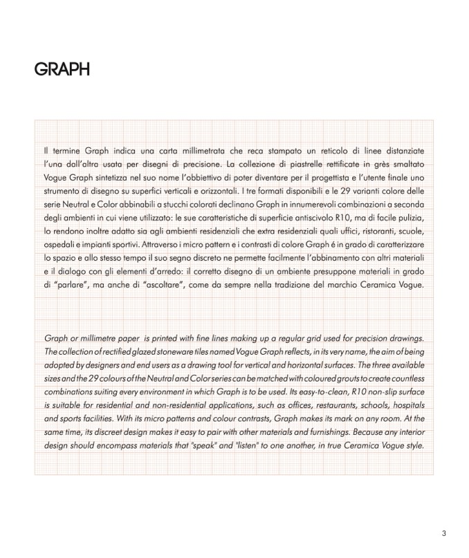 The collection of rectified glazed stoneware tiles named Vogue Graph reflects, in its very name, the aim of being