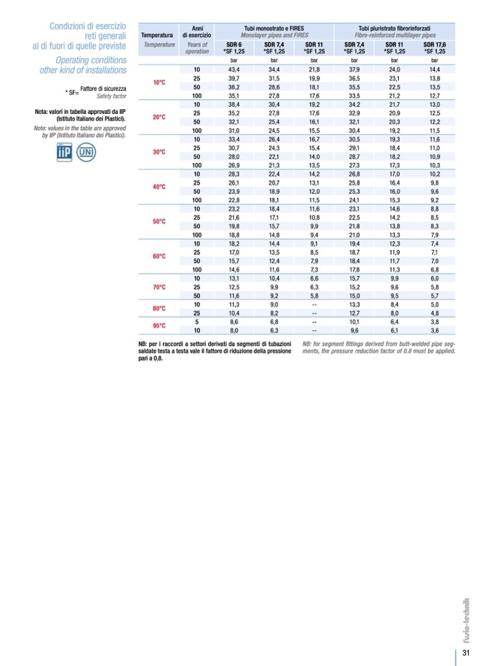 Nota: valori in tabella approvati da IIP