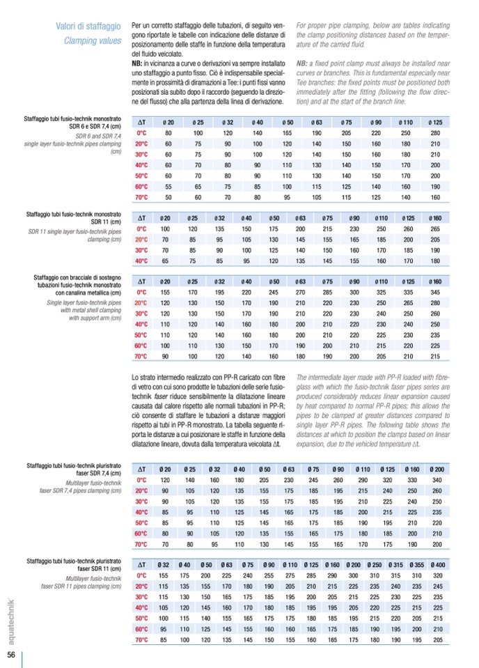 Per un corretto staffaggio delle tubazioni, di seguito ven-