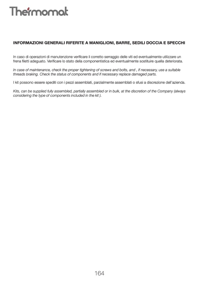 INFORMAZIONI GENERALI RIFERITE A MANIGLIONI, BARRE, SEDILI DOCCIA E SPECCHI