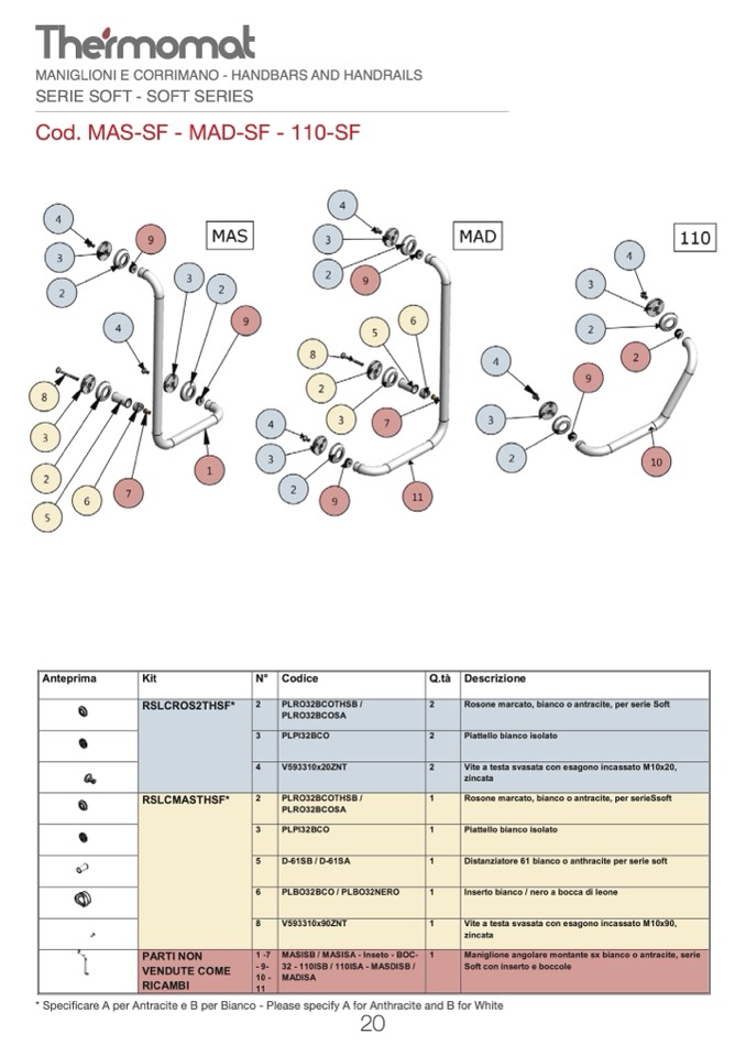 * Specificare A per Antracite e B per Bianco - Please specify A for Anthracite and B for White