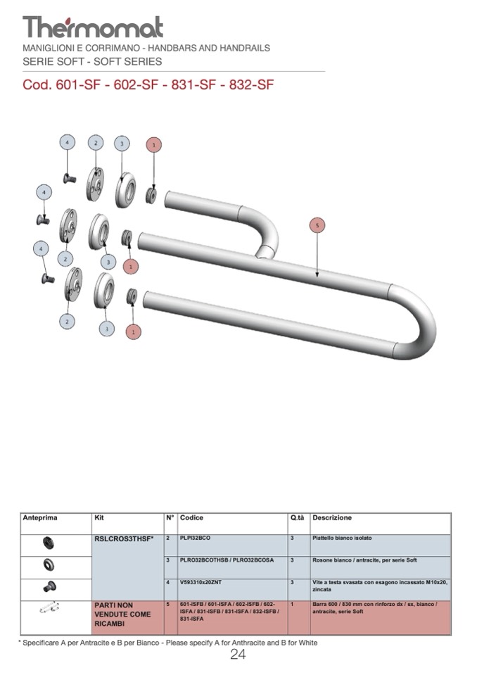 * Specificare A per Antracite e B per Bianco - Please specify A for Anthracite and B for White