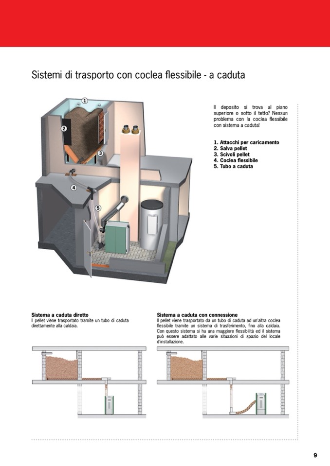 Il pellet viene trasportato tramite un tubo di caduta