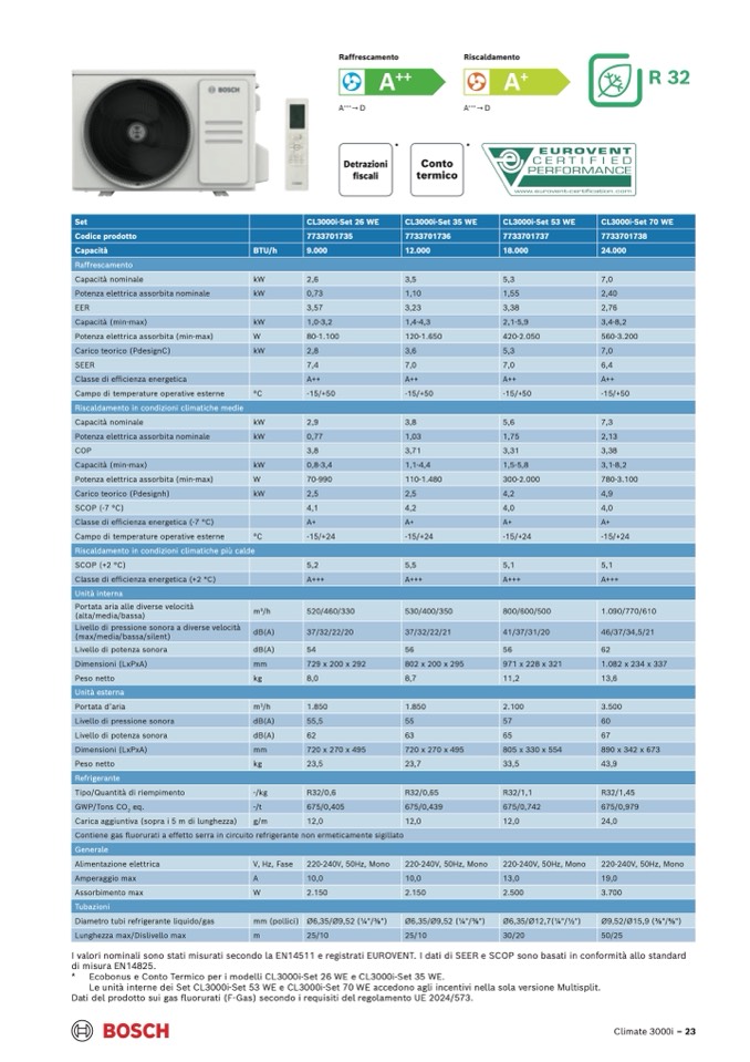 * Ecobonus e Conto Termico per i modelli CL3000i-Set 26 WE e CL3000i-Set 35 WE.