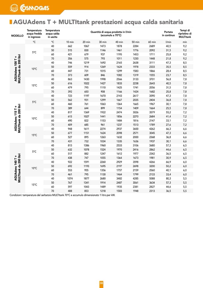 Condizioni: temperatura del serbatoio MULTItank 70°C e accumulo dimensionato 1 litro per kW.