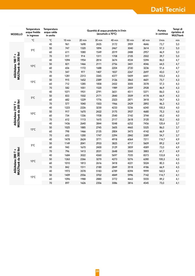 Quantità di acqua prodotta in l/min
