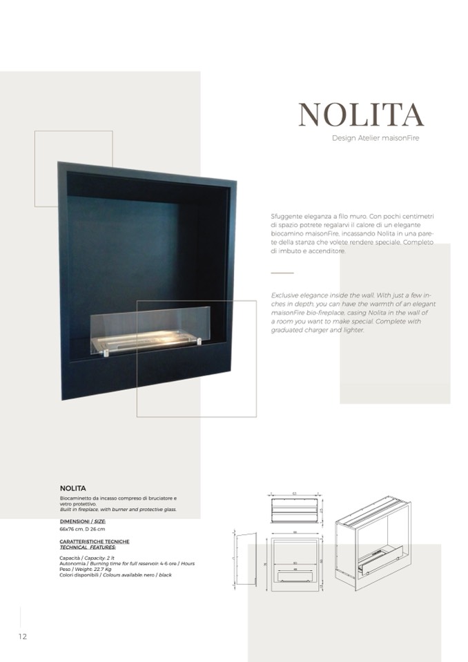 maisonFire bio-fireplace, casing Nolita in the wall of