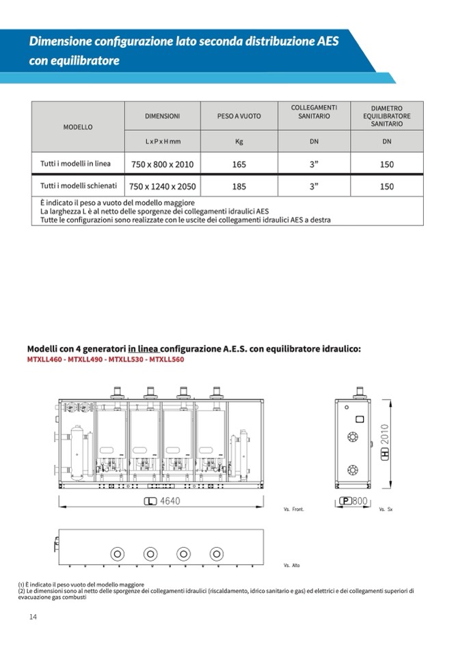 Modelli con 4 generatori in linea configurazione A.E.S. con equilibratore idraulico: