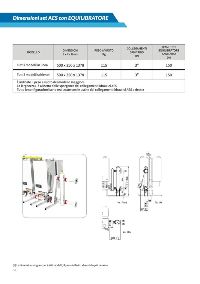 (1) Le dimensioni valgono per tutti i modelli, il peso è riferito al modello più pesante