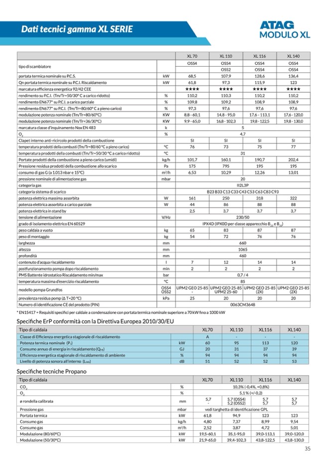 * EN15417 = Requisiti specifici per caldaie a condensazione con portata termica nominale superiore a 70 kW fino a 1000 kW