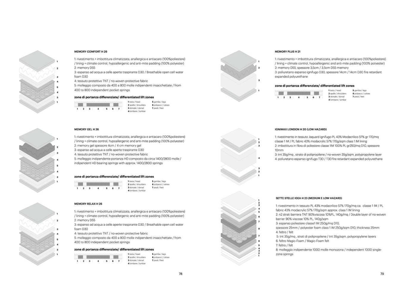 1: rivestimento + imbottitura climatizzata, anallergica e antiacaro (100%poliestere)