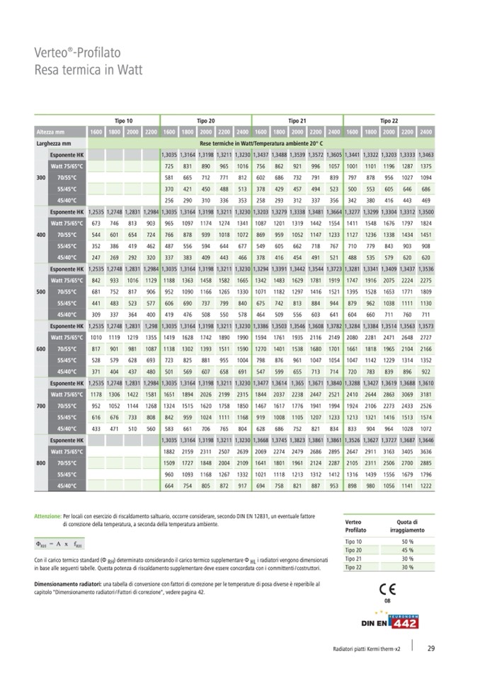 capitolo "Dimensionamento radiatori / Fattori di correzione", vedere pagina 42.