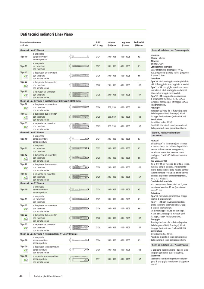 Dati tecnici radiatori Line / Piano