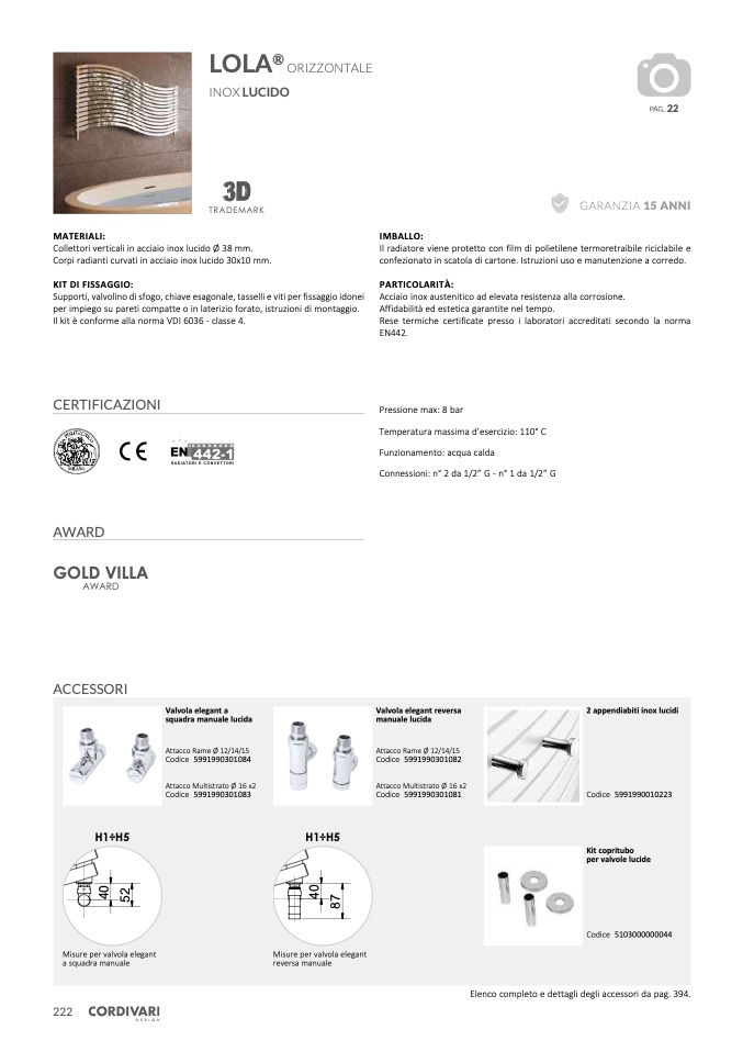Misure per valvola elegant