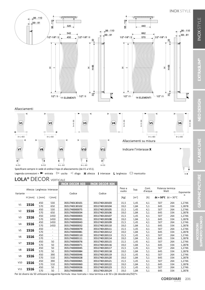 Per Δt diversi da 50 utilizzare la seguente formula: resa ricercata = resa termica a Δt 50 x (Δt desiderato/50)^n