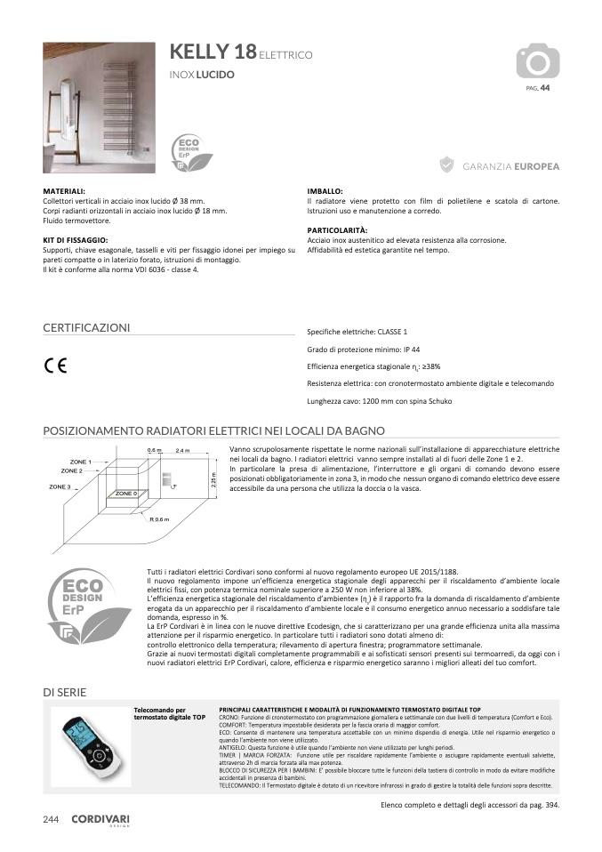 Tutti i radiatori elettrici Cordivari sono conformi al nuovo regolamento europeo UE 2015/1188.