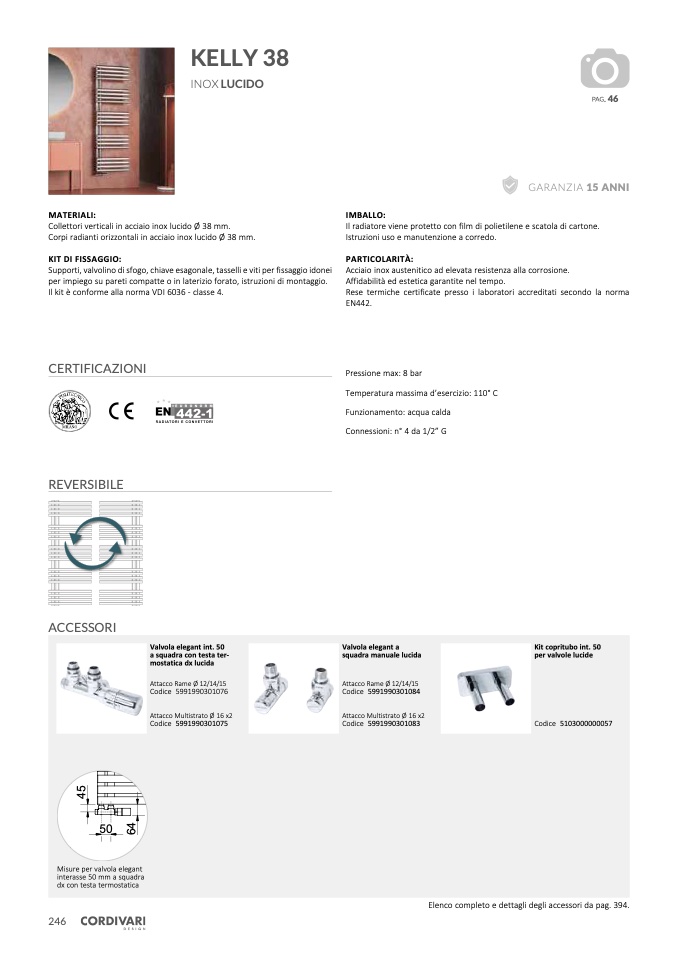 Collettori verticali in acciaio inox lucido Ø 38 mm.