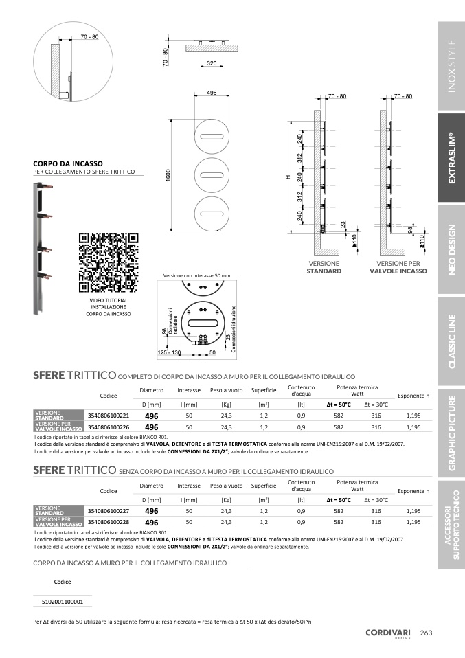 Per Δt diversi da 50 utilizzare la seguente formula: resa ricercata = resa termica a Δt 50 x (Δt desiderato/50)^n