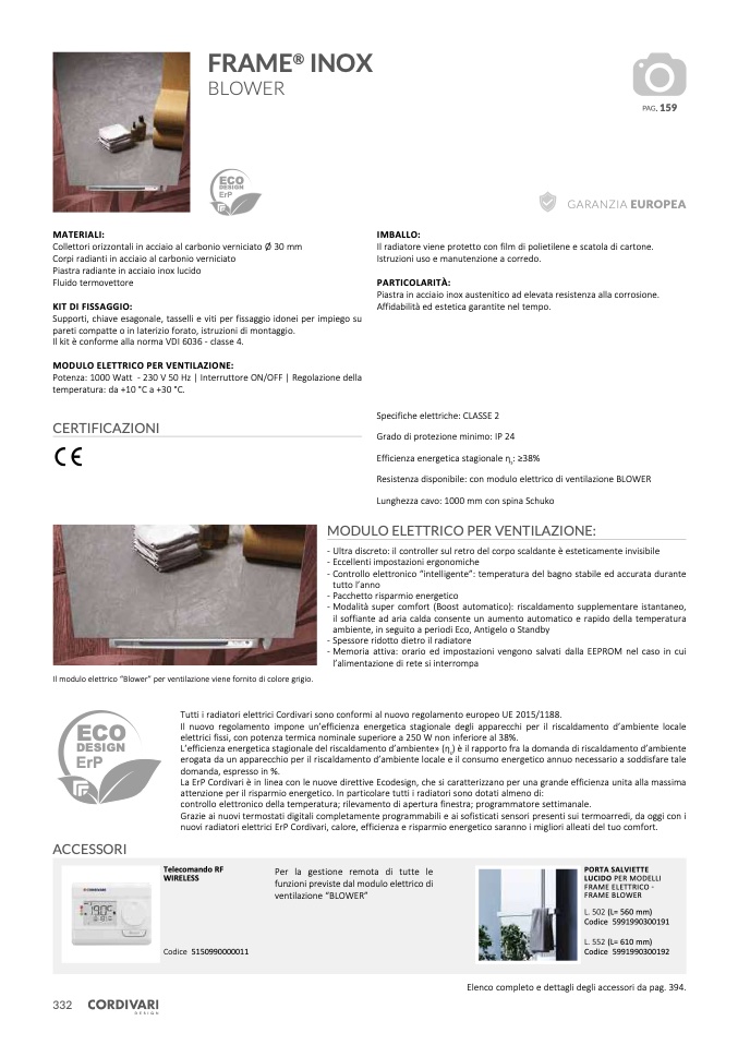 Tutti i radiatori elettrici Cordivari sono conformi al nuovo regolamento europeo UE 2015/1188.