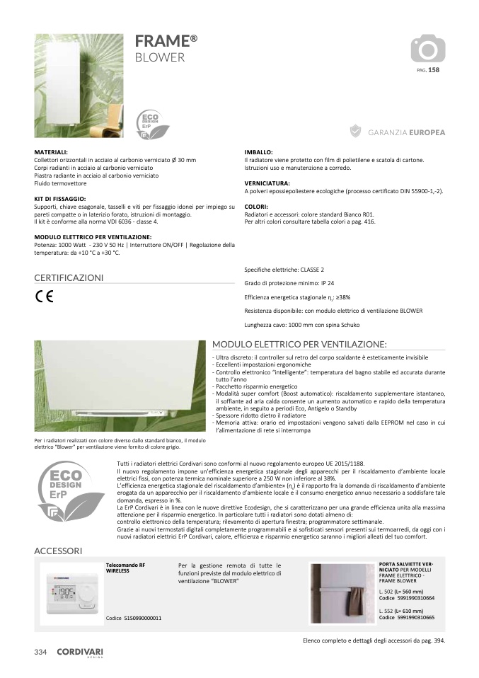 Tutti i radiatori elettrici Cordivari sono conformi al nuovo regolamento europeo UE 2015/1188.