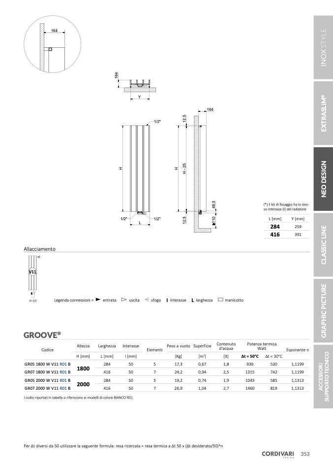 Per Δt diversi da 50 utilizzare la seguente formula: resa ricercata = resa termica a Δt 50 x (Δt desiderato/50)^n