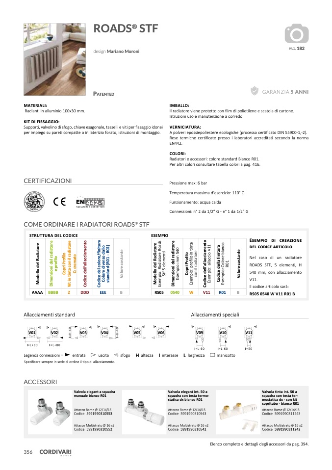 Radiatori e accessori: colore standard Bianco R01.
