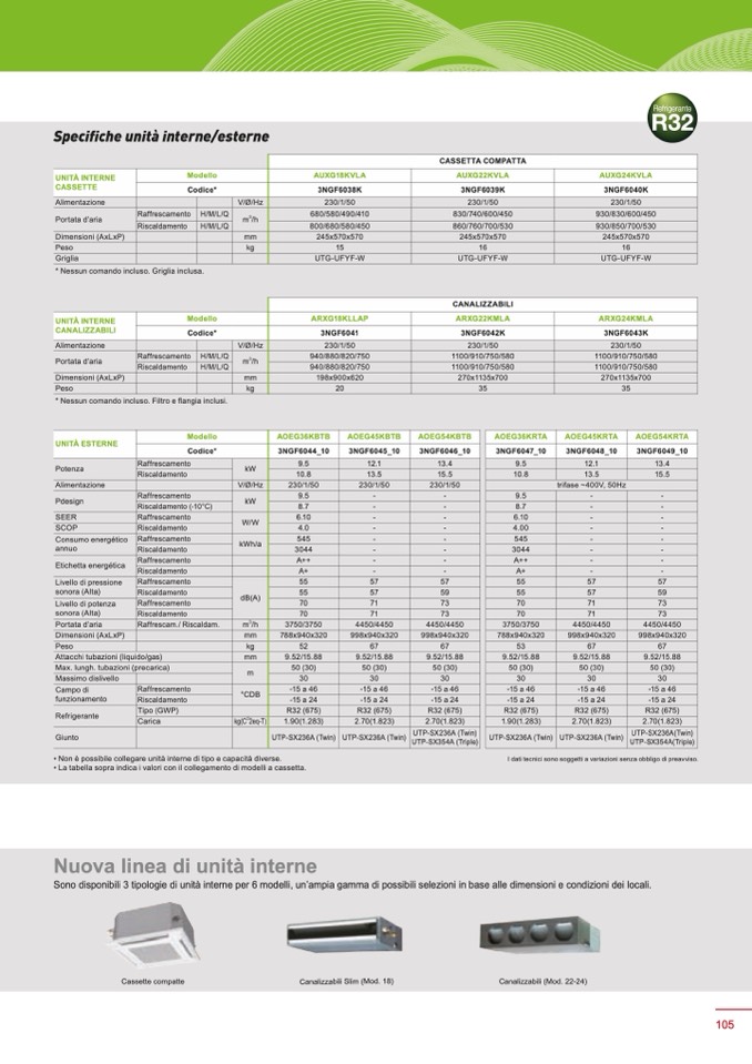 Sono disponibili 3 tipologie di unità interne per 6 modelli, un’ampia gamma di possibili selezioni in base alle dimensioni e condizioni dei locali.