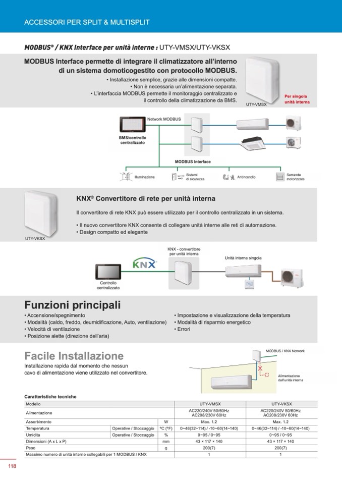 • Il nuovo convertitore KNX consente di collegare unità interne alle reti di automazione.